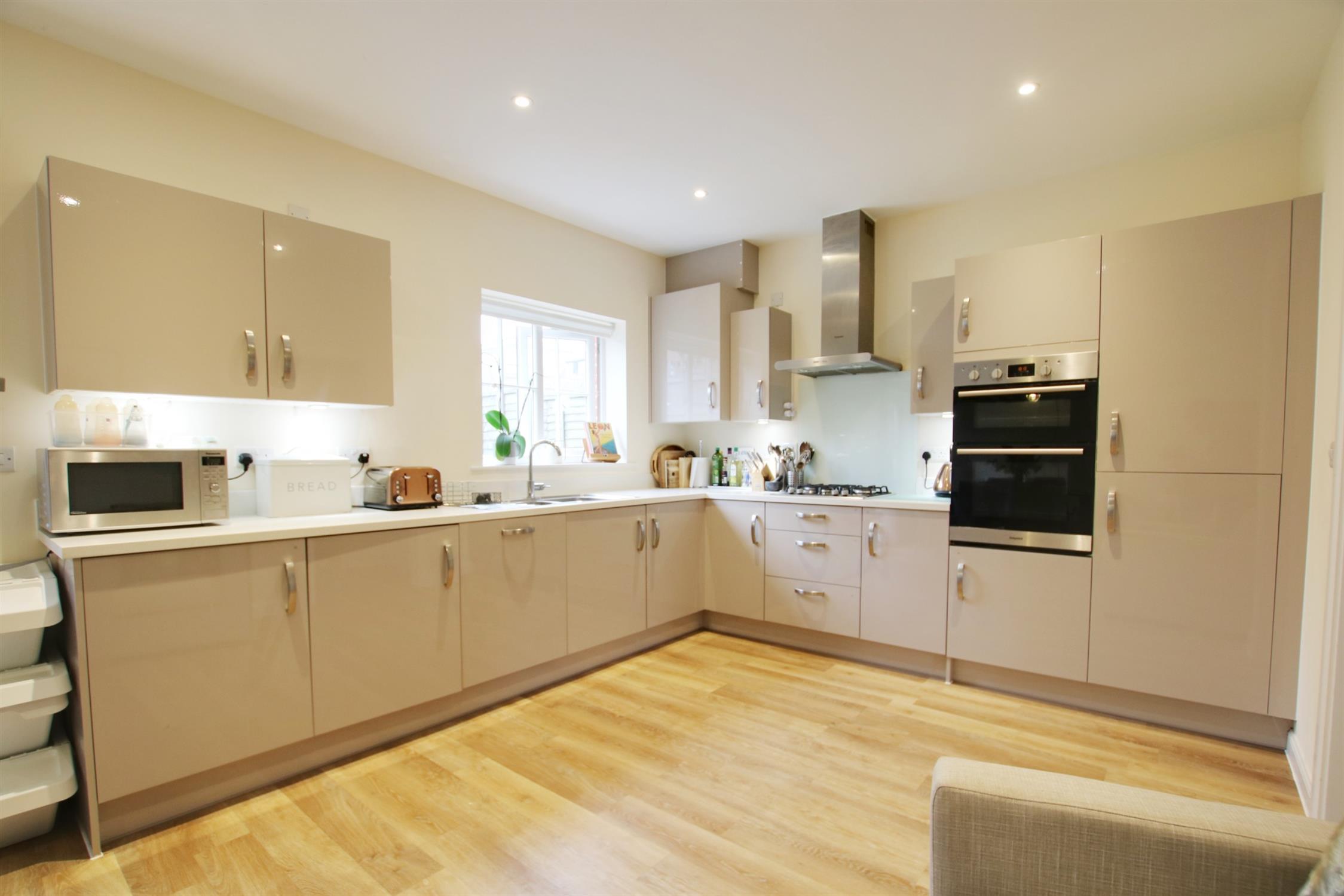 Upstairs, there are four bright bedrooms which are neutrally decorated throughout. The master benefits from an ensuite fitted with toilet, basin and double shower, whilst the modern family bathroom offers a shower over bath.