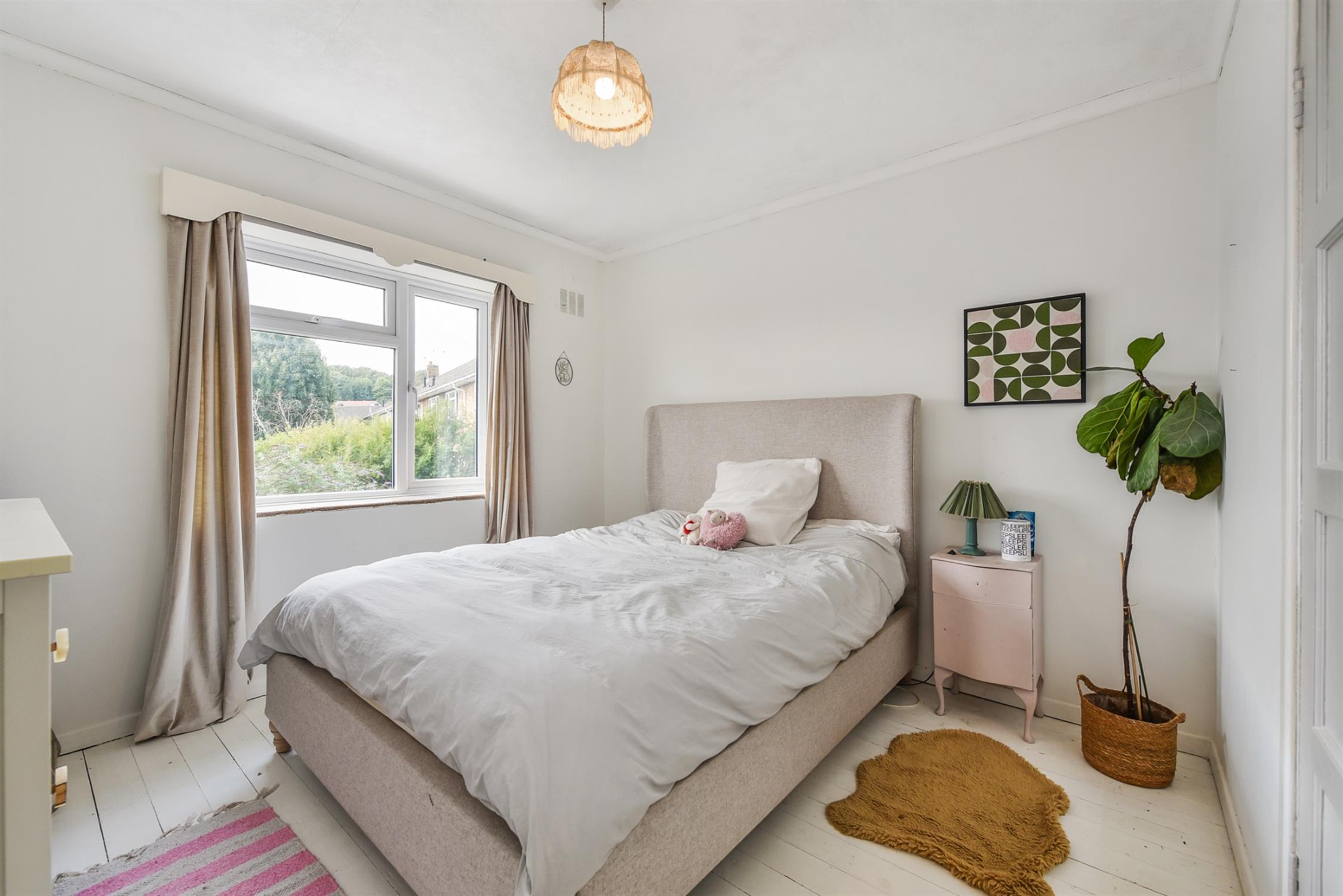 A double bedroom featuring a built-in wardrobe, overlooking the rear garden.