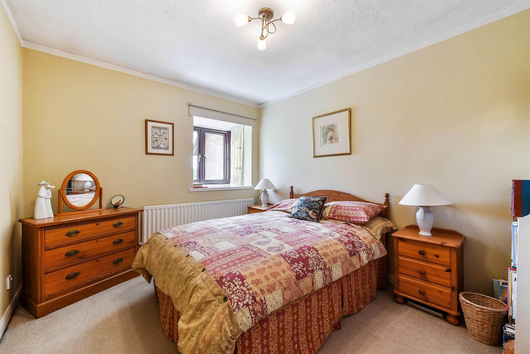 Double bedroom with a box window overlooking the rear garden, and a built-in wardrobe.
