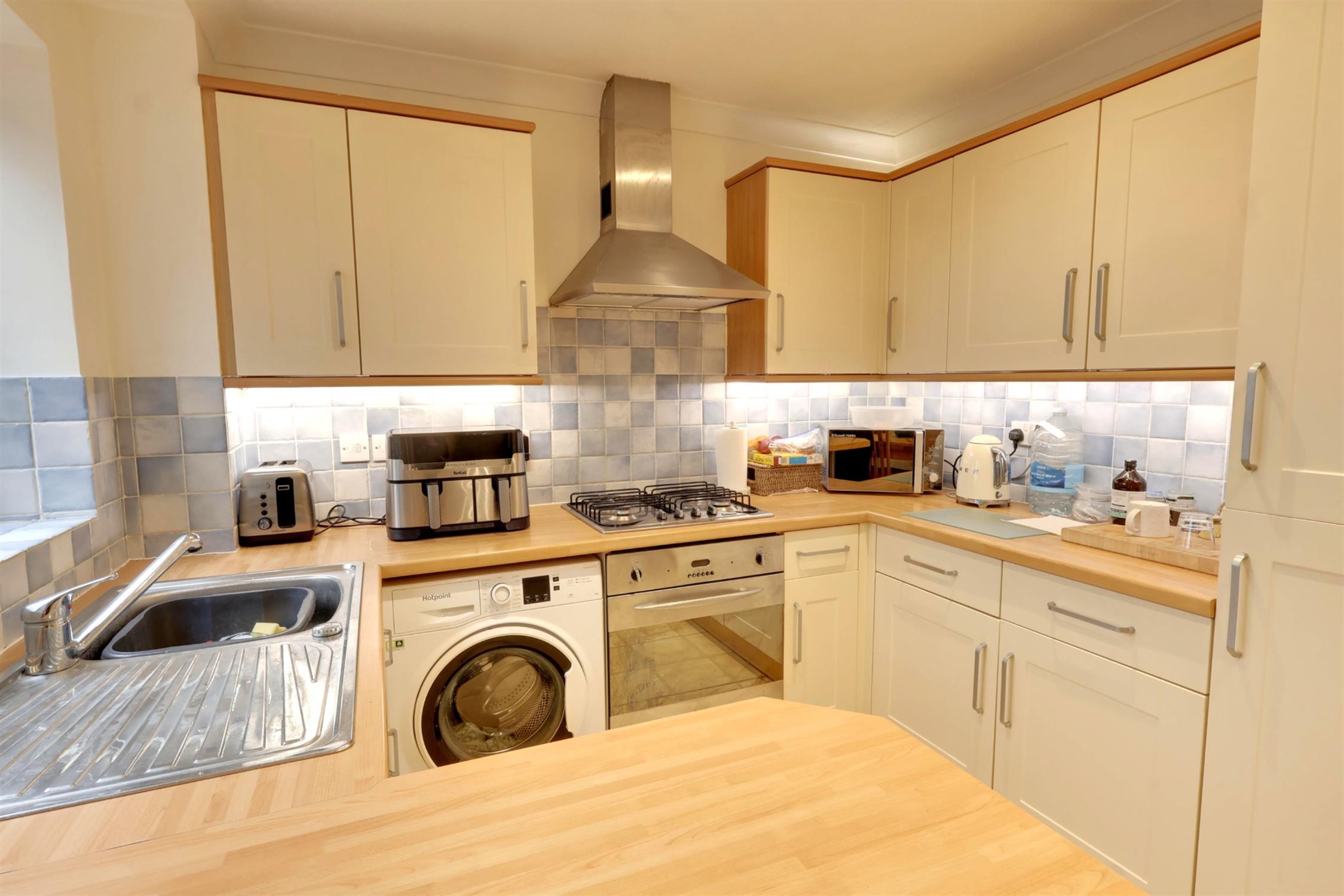 Range of refitted floor and wall units with contrasting work surfaces and complimentary tiling to walls. Inset stainless steel single drainer sink with mixer tap. Integrated gas hob with extractor hood over and built in electric oven below. Plumbing and space for washing machine and fridge/freezer. Breakfast bar, double radiator. Double glazed window to rear aspect, double glazed French doors to conservatory,