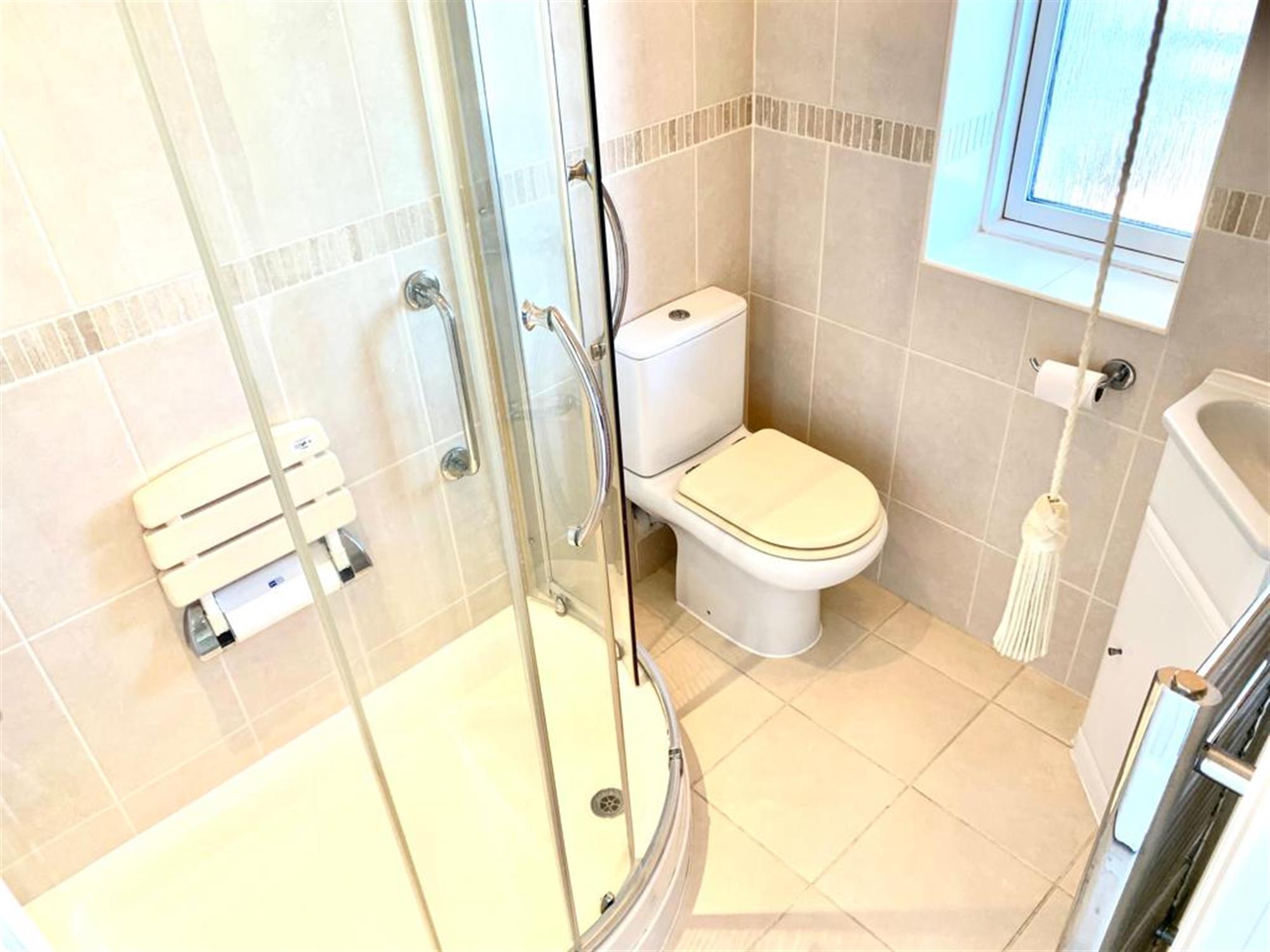 Cloakroom with window to front, toilet, sink and vanity unit.