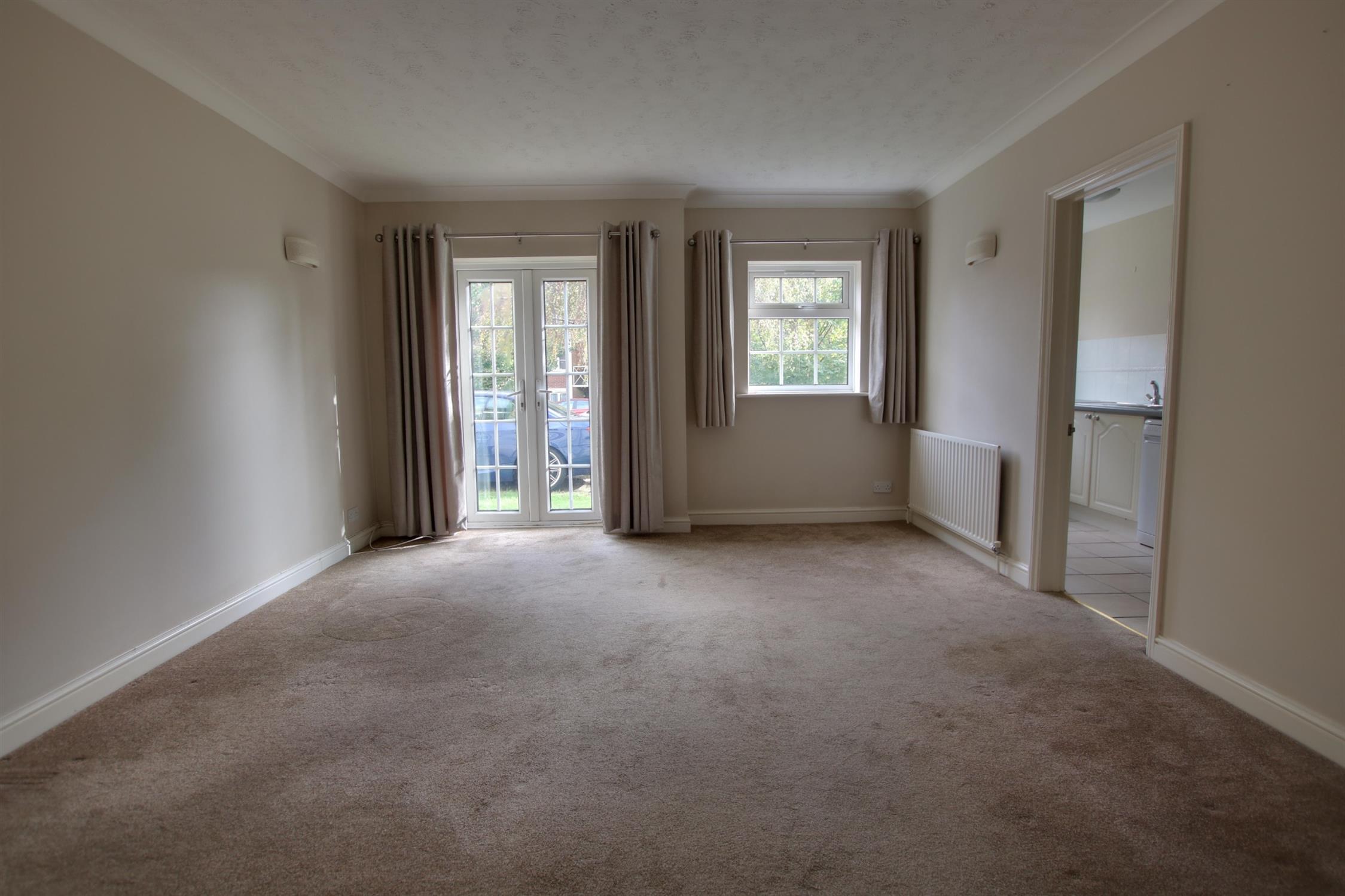 Double glazed French doors to front aspect. Double glazed window to front aspect. Coving to textured ceiling. Radiator. Door to:-