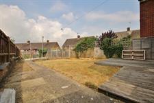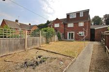 To the front of the property are three off road parking spaces and a pathway which steps down to the entrance. The west facing rear garden is mostly laid to lawn with a patio area and enclosed on all sides.