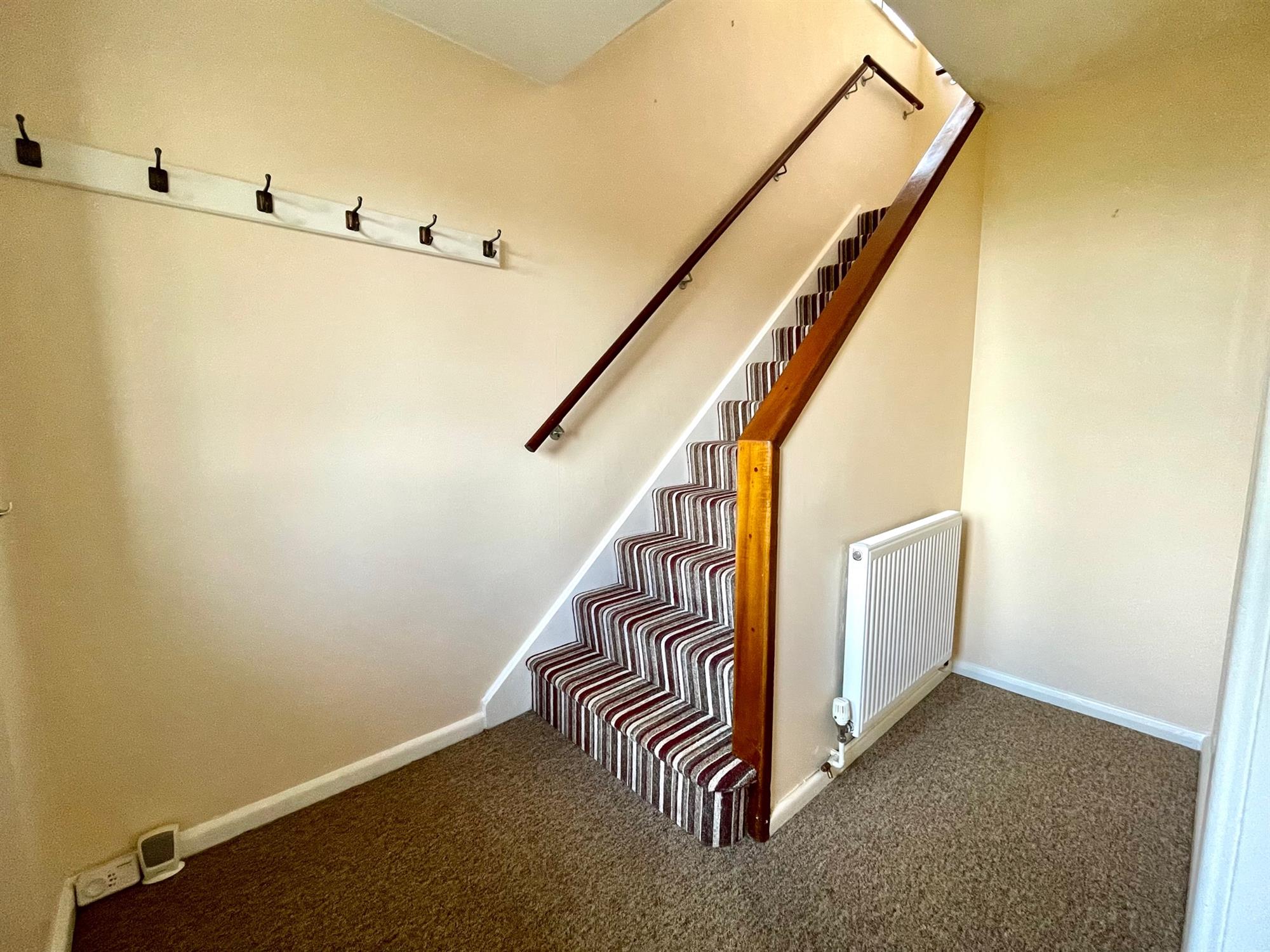 To the front of the house, there is an easy-maintenance garden, with path leading to the front door and to the side access. Upon entry, there is a good size entrance hall with plenty of room for shoes and coats. A door leads to the living room and stairs rise to the first floor. The living room is located to the front of the property and a large window allows ample light into the space.