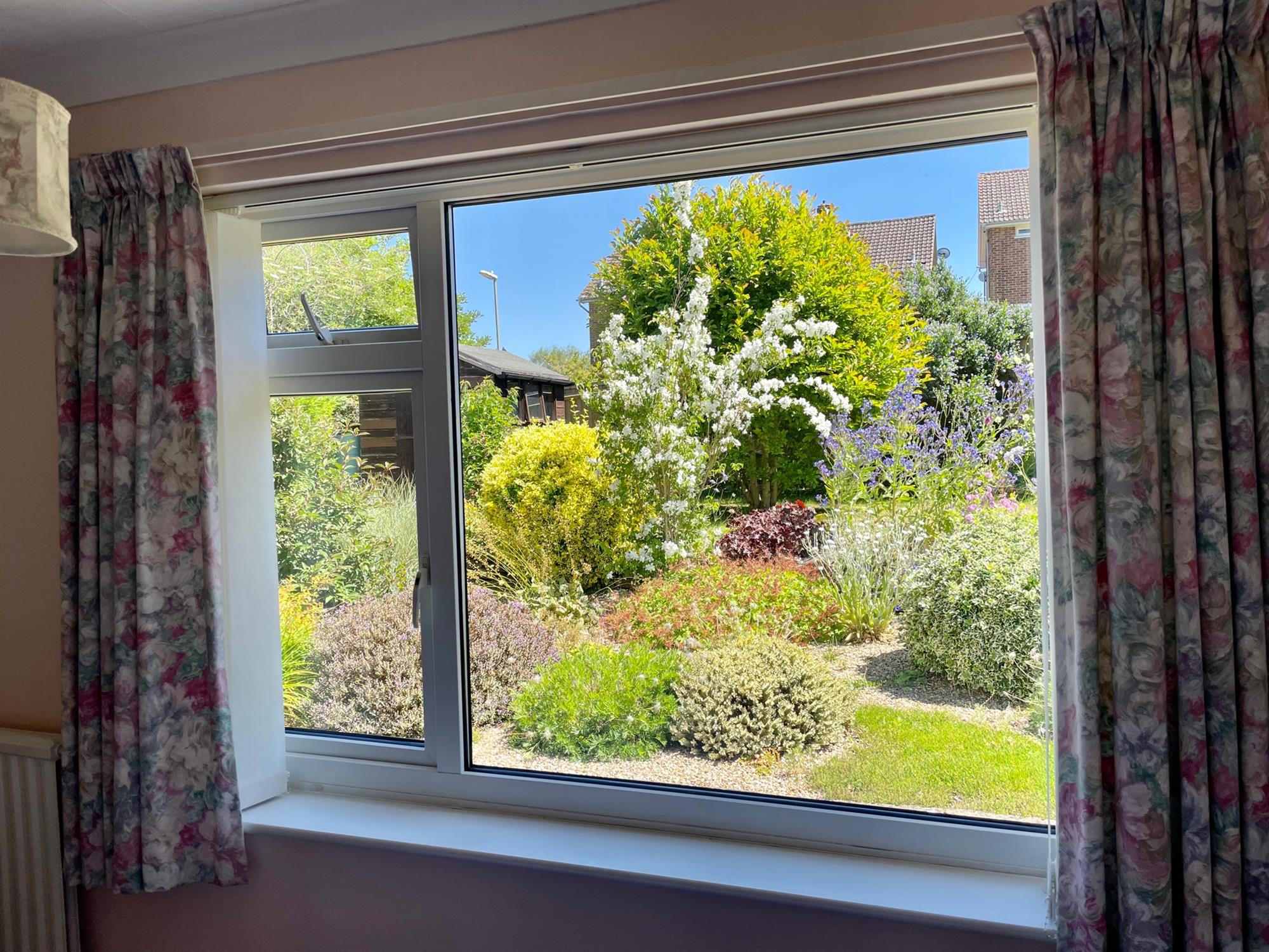 A three-bedroom detached bungalow on generous corner plot with southerly aspect. Offering 21ft L-shape living room, ample off-road parking, garage, pretty landscaped garden, and no onward chain.