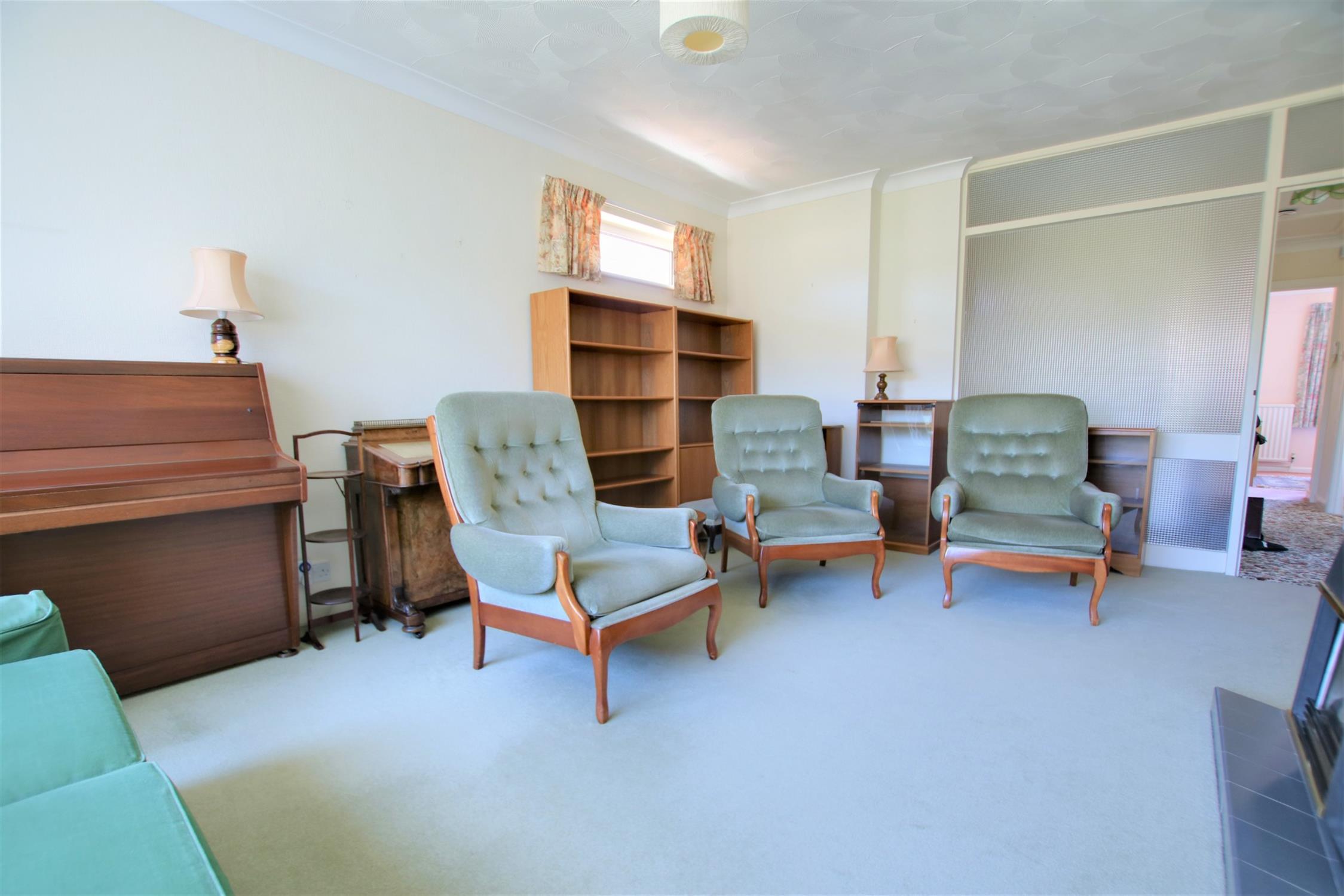 To the front of the property, there is a driveway with space for several cars and a pretty front garden. Upon entry, there is a useful porch which opens to a central hall that leads through to all accommodation. The living room is a L-shape and a terrific size, spanning across an impressive 21ft. The room is big enough for both lounge and dining furniture, and large format windows allow ample light into the space.