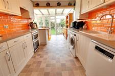 Integrated fridge and freezer, space and plumbing for a dishwasher, washing machine, tumble dryer and a gas oven. Sink and drainer with a swan neck mixer tap, ample under counter and head height cupboard storage, breakfast nook, cupboard housing a wall mounted gas boiler. The kitchen benefits from a heated dining area/conservatory which offers far reaching farmland and South Downs views and also allows access to the garden.