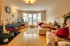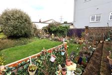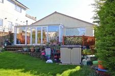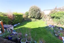 Mainly laid to lawn with a mature hedge and shrub border providing a degree of privacy, established plant borders, elevated patio seating area, side walk way to the front of the property.