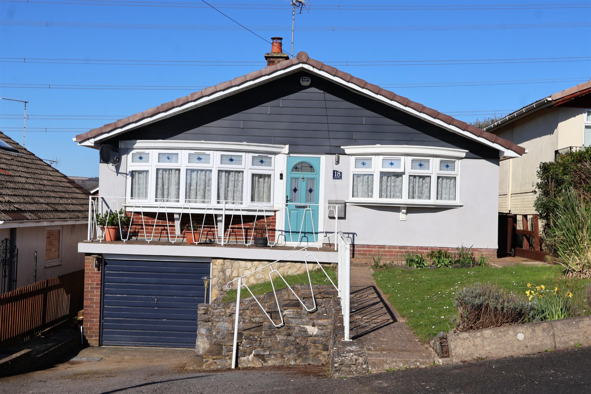 FRONT GARDEN : Ornamental front lawn with well stocked flower borders. Driveway parking leading to the garage.