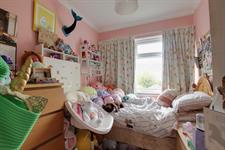 The westerly-facing rear garden is predominantly laid to lawn with an outside tap and a raised patio area.