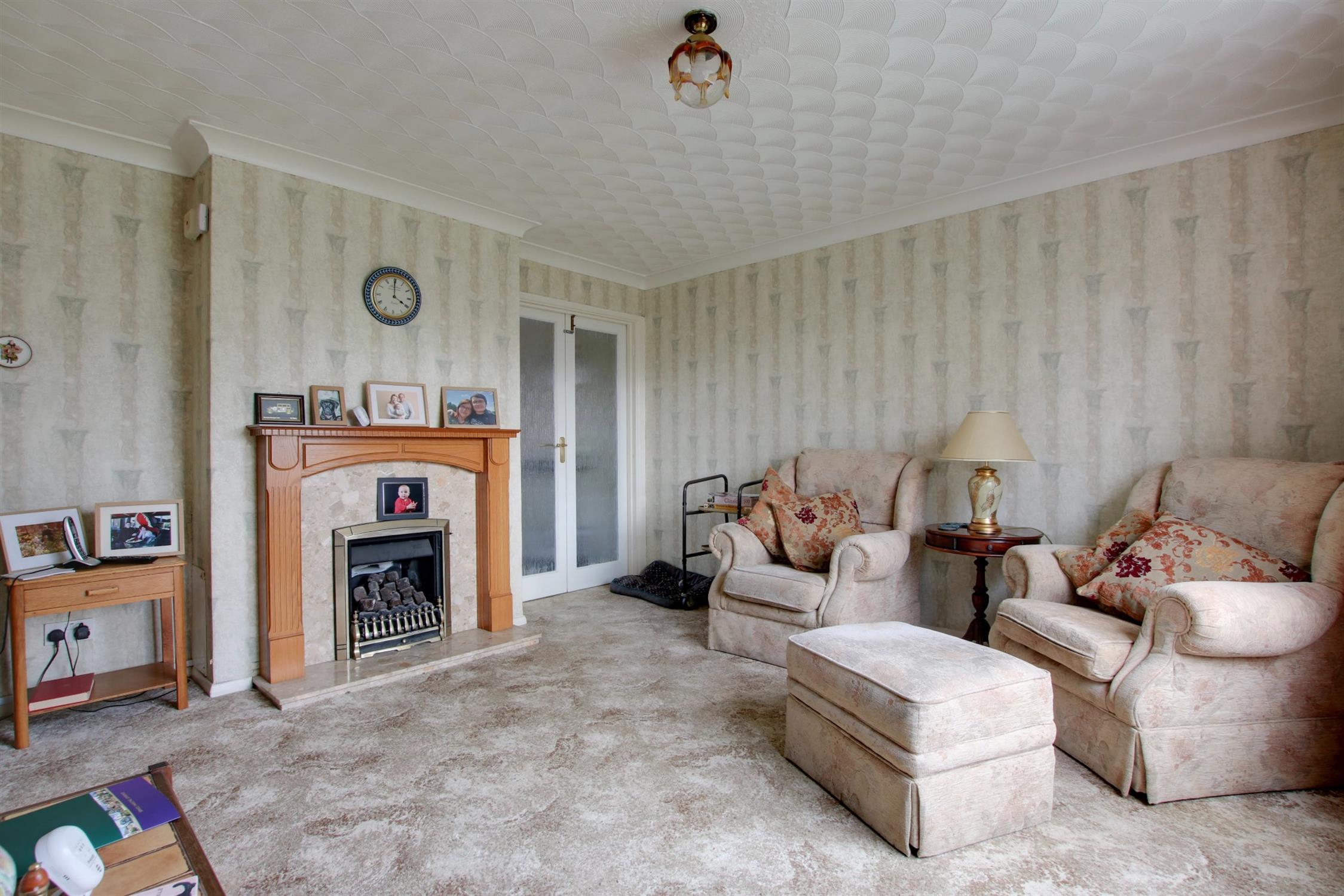 Double glazed window to front elevation. Understairs storage cupboard. Radiator. Coved and textured ceiling. Glazed double doors to: