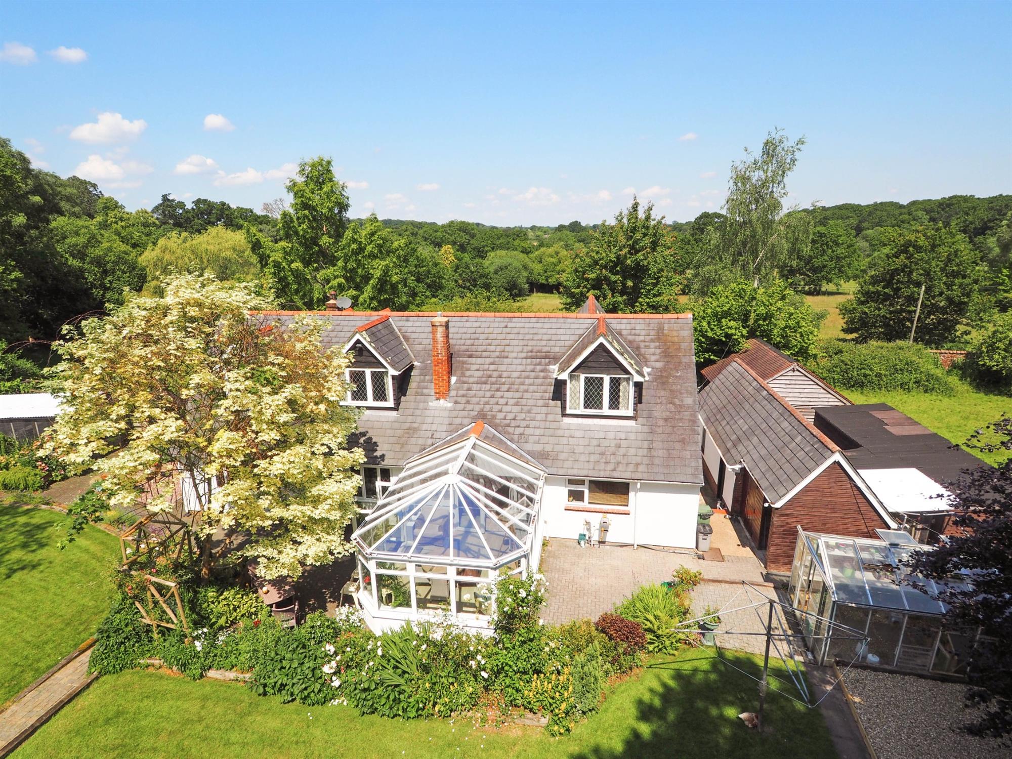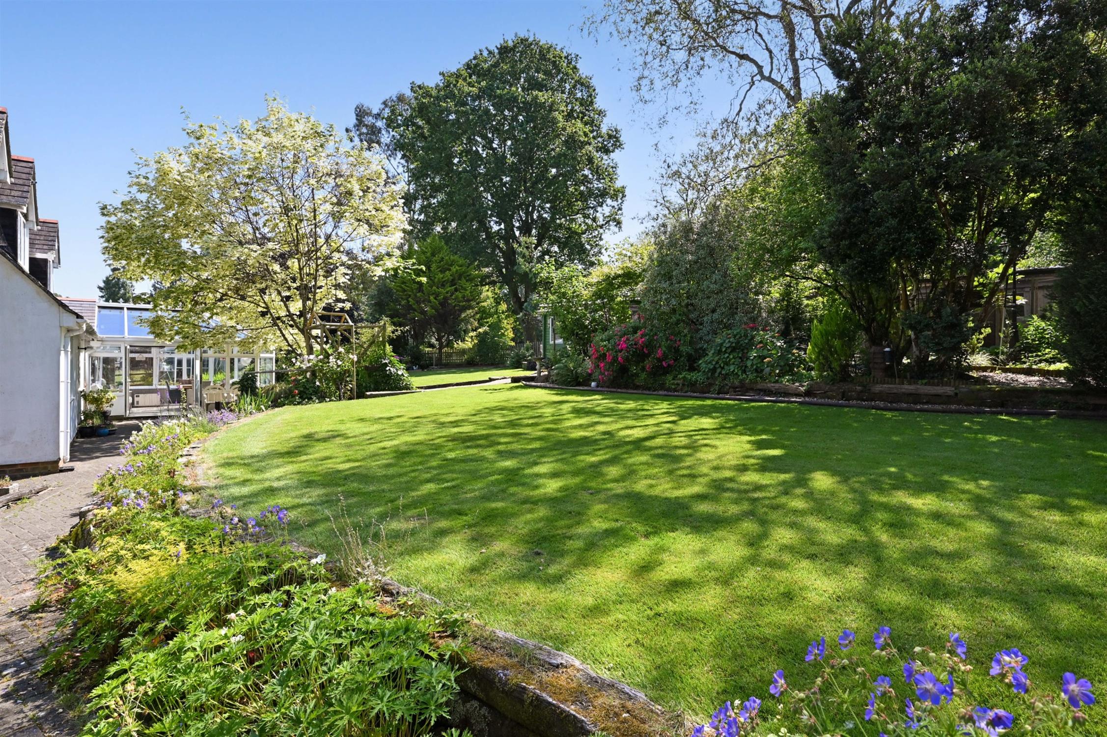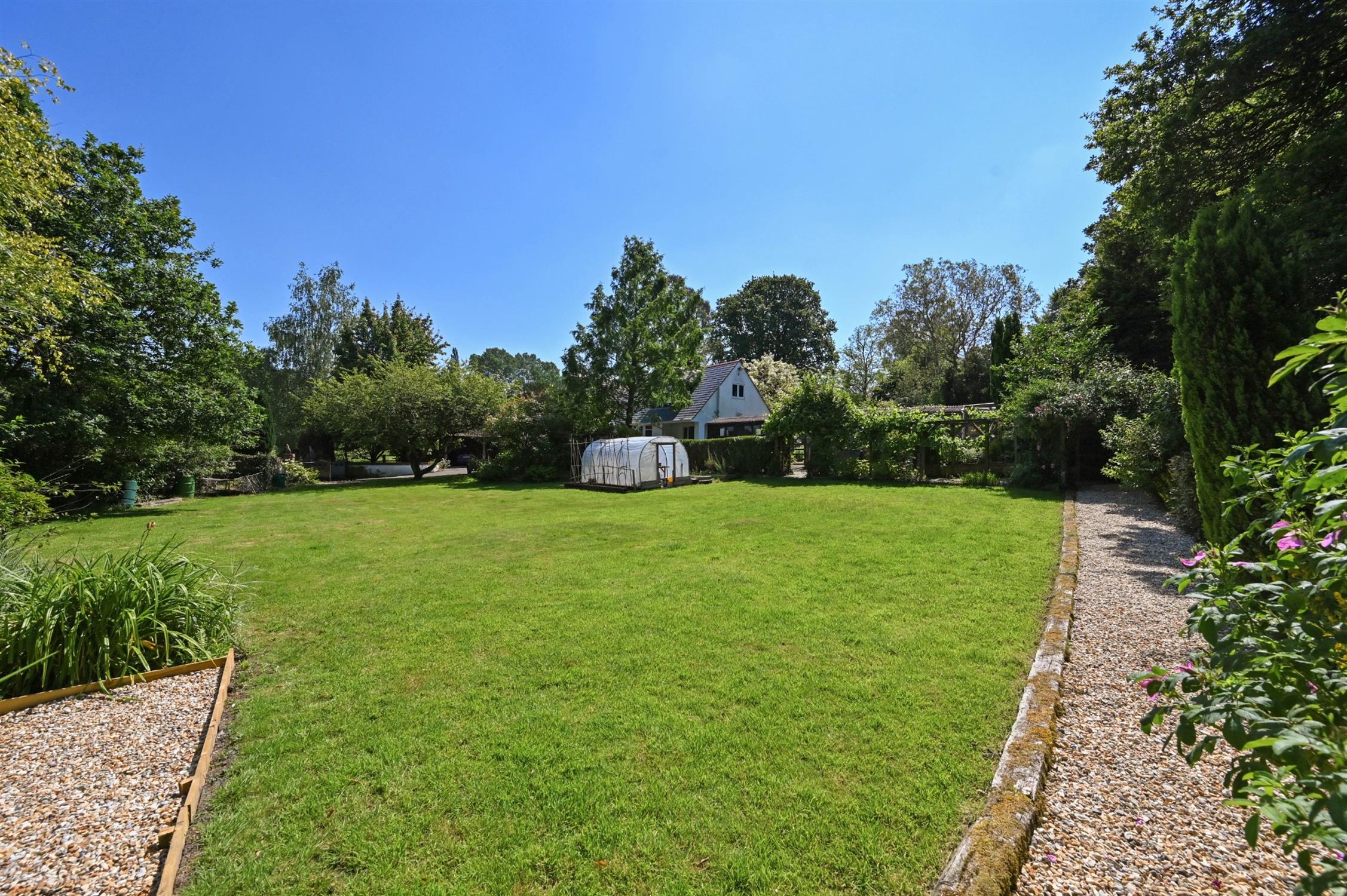 The property sits centrally in wonderful gardens extending to just over three-quarters of an acre which have been imaginatively created by our clients and thoughtfully landscaped with a large ornamental pond to the front and open areas laid to lawn connected by well laid meandering paths complemented by colourful flower borders and an array of mature trees, plants and shrubs creating a peaceful and enchanting sylvan environment enjoying near total privacy and seclusion, with gated access onto the open Forest.