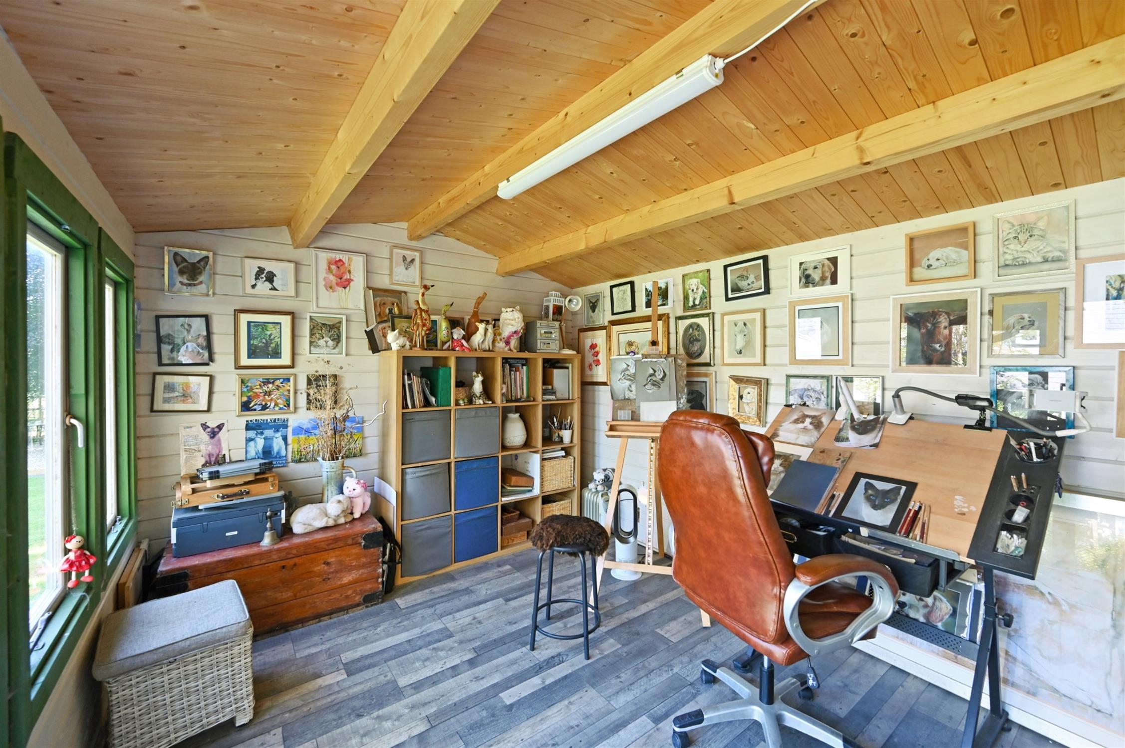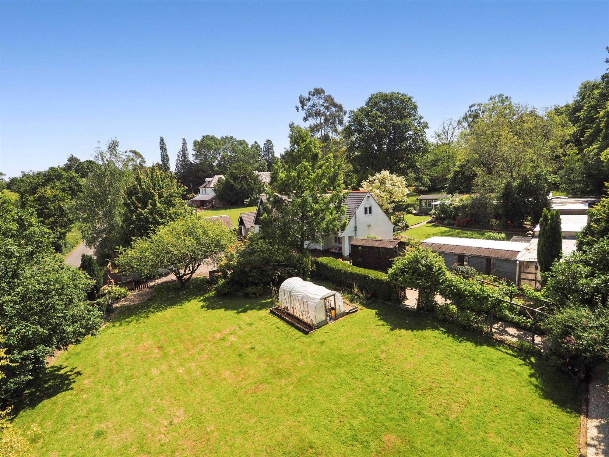 As the property sits on the open Forest, a cattle grid sits across the driveway with double gates opening onto an expansive parking area leading to the double car barn and attached garage (slightly restricted access) which includes a utility area and useful WC beyond which are an attached store and separate log-store. In addition to these are a detached workshop with attached storage area, greenhouse, poly tunnel, and a lovely garden chalet currently used as an art studio but perfect as an office for home working.