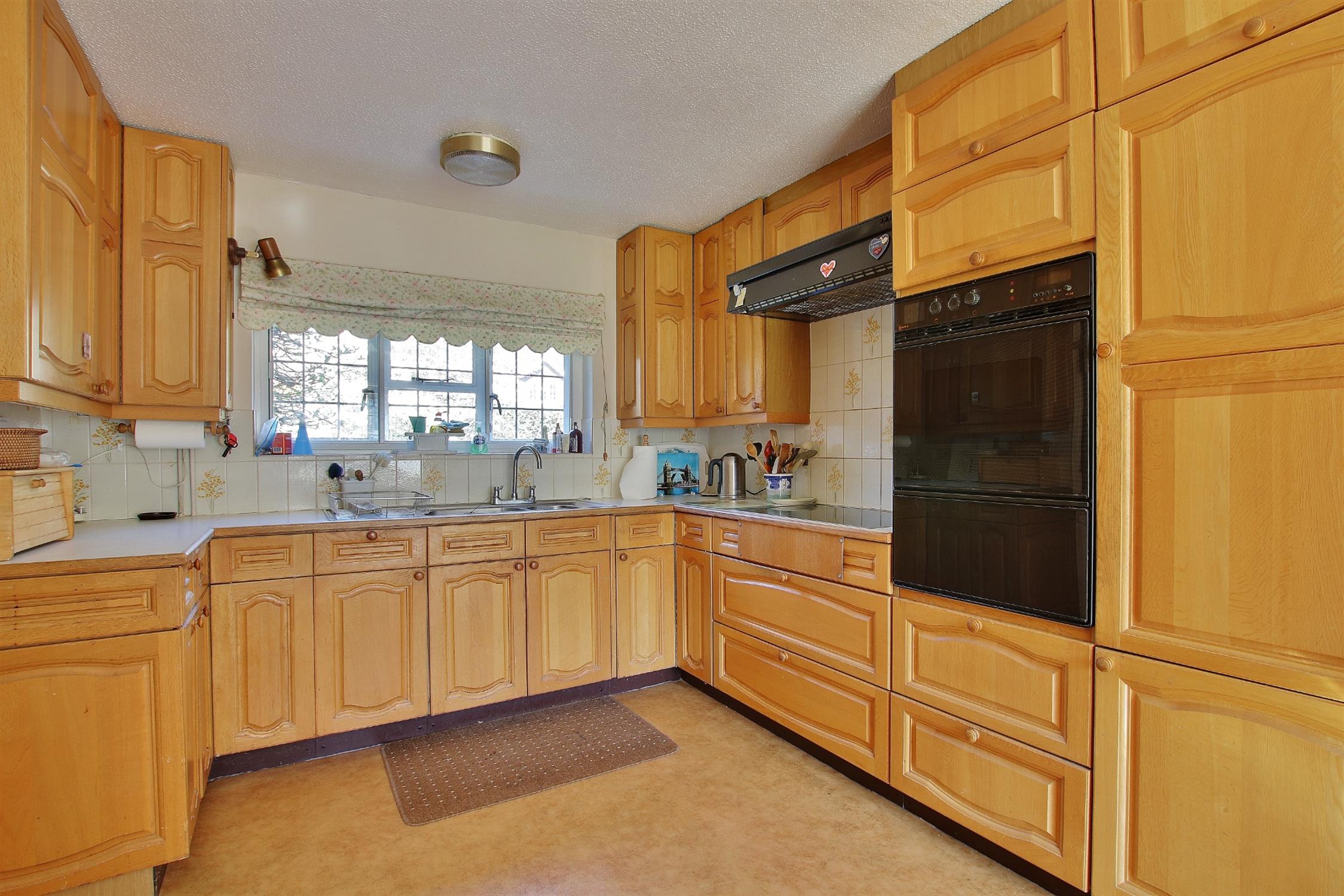 Leading off the hall to the left is the kitchen/breakfast room which also enjoys aspects to both the front and rear and which is well fitted having a range of light oak fronted wall and base units with work surfaces over and tiled surrounds, an inset double sink unit, and integrated oven and hob. There is a breakfasting and informal dining area and a floor standing oil fired boiler for central heating. A lobby adjoining the kitchen provides access to the double garage and also opens into the sun room which enjoys a wonderful aspect over the gardens and sun terrace. Adjacent to the sun room is a useful utility room with plumbing for washing machine and dishwasher, with a door providing separate side access.
