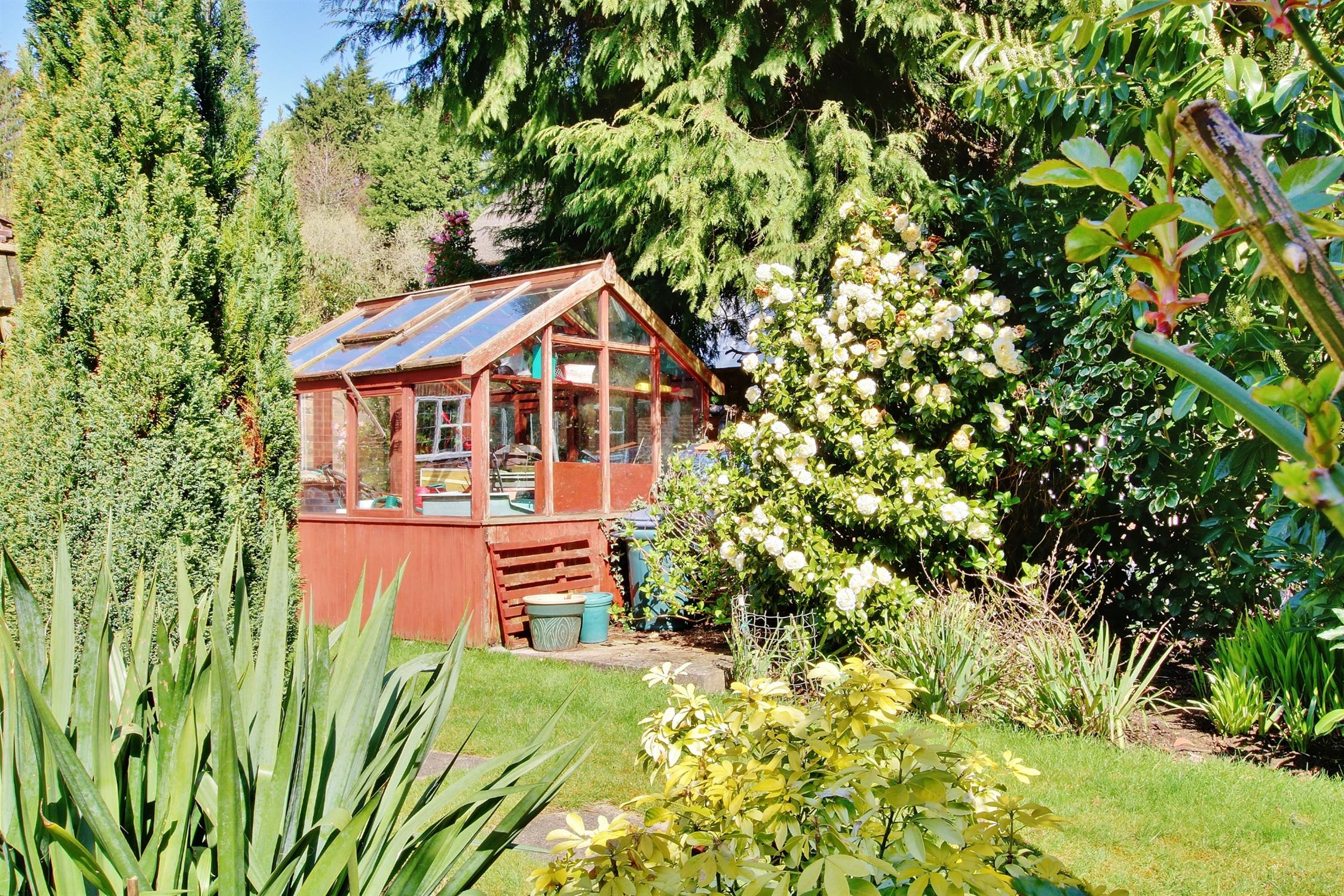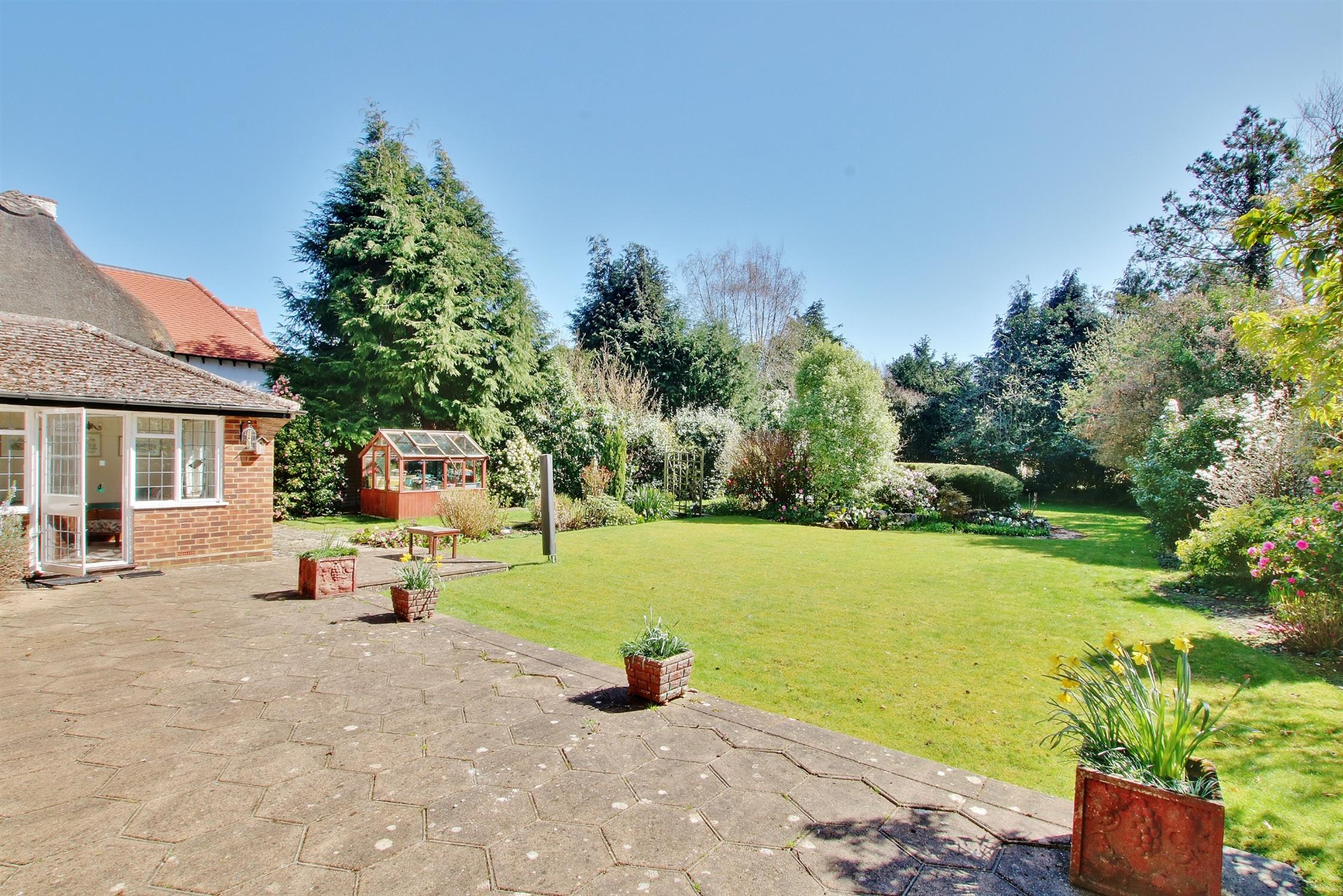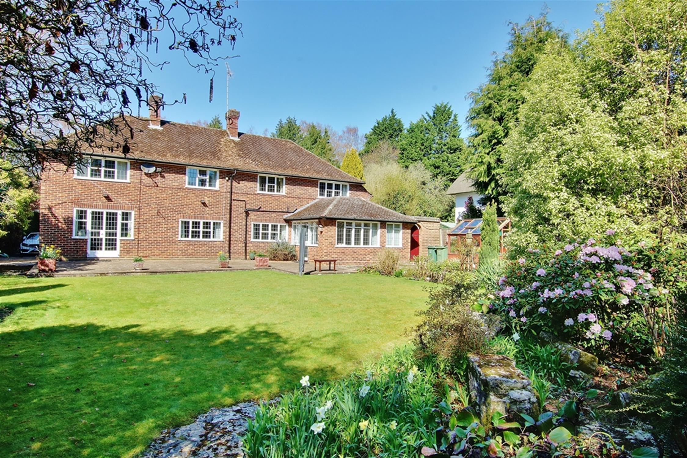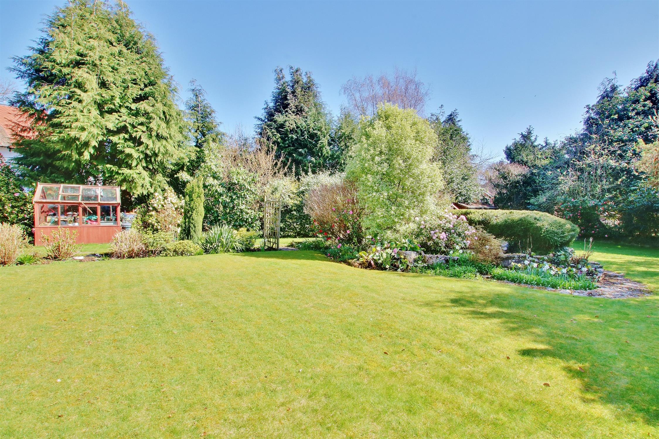 A sun terrace adjoins the rear of the property beyond which are expansive lawns bordered by mature trees, shrubs, rhododendrons and the like providing a riot of colour, especially during the spring and summer months. There is a timber-framed greenhouse, two garden sheds, and a central island with rockery and pond which neatly divides the garden, whilst the mature borders ensure practically total privacy and seclusion. In all the plot extends to just in excess of one third of an acre.