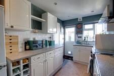 Double glazed window to rear elevation and double glazed door to garden. Stainless steel single drainer sink unit with cupboard under. Further range of wall and base level units with roll edge work surfaces over and splash back tiling. Plumbing for washing machine. Recess for fridge/freezer. Recess with oven to remain. Large larder cupboard. Inset ceiling spotlights.