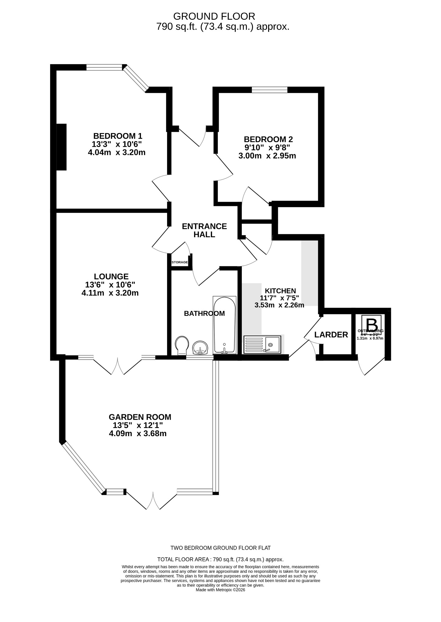 DESCRIPTIONA wonderful opportunity to purchase a two bedroom ground floor flat which not only has a driveway to the front but its own generous rear garden. The property's accommodation briefly comprises; entrance hall, two double bedrooms, bathroom, kitchen and lounge which leads through to a fabulous garden room with insulated roof which leads directly onto the garden. The property benefits from double glazing and is warmed by gas central heating. There is off road parking available to the front of the property and a generous rear garden with outside storage. As sole agents, we would highly recommend an early inspection.