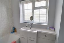 Low level WC, wall-mounted vanity unit, side aspect double glazed window, radiator, laminate flooring.